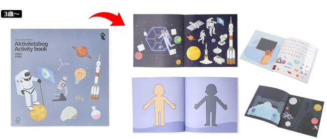 宇宙や科学、からだの仕組みを、それぞれ付属されているシールをぺたぺた貼って楽しみながら学べるアクティビティブック。もちろん自分で絵を描き足したりしてもOK。興味の入り口に!
