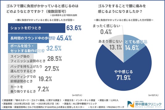 NLC野中腰痛クリニック(所在地:大阪府大阪市東淀川区、医療法人蒼優会理事長:野中 康行)は、ゴルフを定期的にする60代以上の男女を対象に、「春のスポーツ・ゴルフ×腰痛」に関する調査を実施しました。