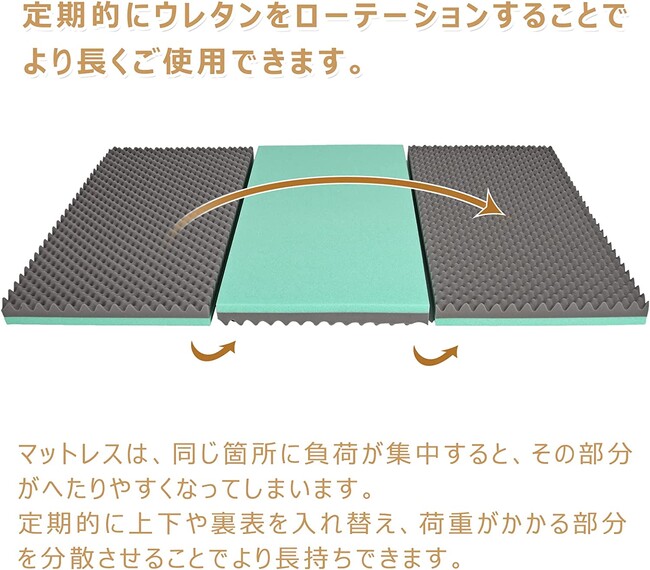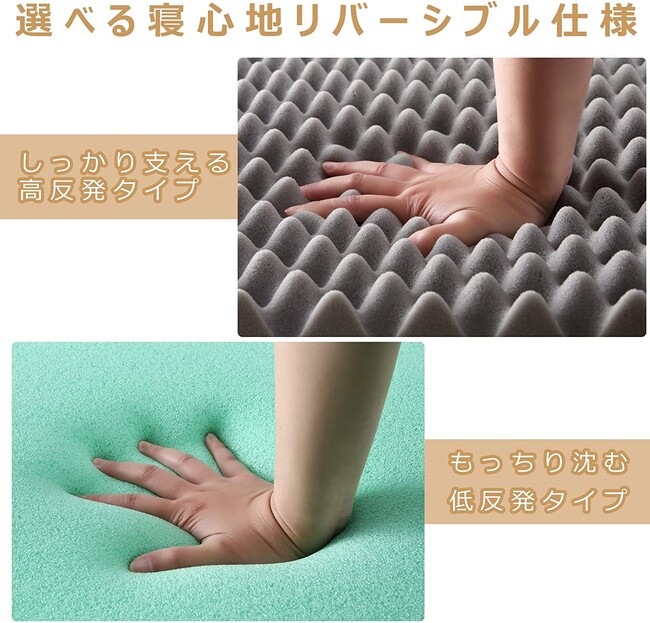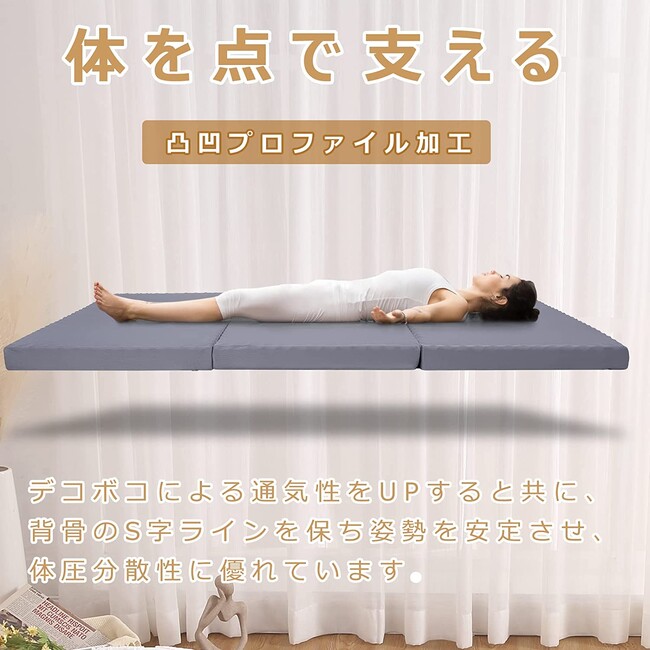Beraxyのダブルサイズのマットレスは、高反発でありながら沈み込みすぎず、寝返りが打ちやすい快適な寝心地を提供します。凹凸加工による体圧分散効果や通気性の良いメッシュ生地の採用など、快適さと使いやすさにこだわった設計です。収納やお手入れも簡単で、床置きやベッドの上で使用することができる多機能なベッドマットです。Beraxyマットレスで理想的な睡眠環境を手に入れましょう!
