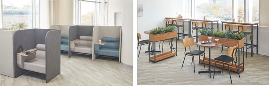 ブース型ソファ。仕事の合間のリフレッシュや、個人の集中スペース等に利用いただける適度なセミクローズド空間です。