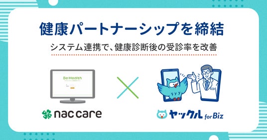 株式会社ヤックル(所在地:東京都港区、代表取締役社長:布川佳央)は、ITを活用したヘルスケア事業を展開する株式会社エヌ・エイ・シー・ケア(本社:東京都千代田区、代表取締役:山崎直人、以下「エヌ・エイ・シー・ケア社」)と、「健康パートナーシップ」をこのたび締結いたしました。「ヤックル」は、生活習慣病の重症化予防プラットフォームから、保険適応のオンライン診療を提供し、2024年6月1日より法人の健康経営を実質的な医療提供を通じて支援しています。今回の「健康パートナーシップ」により、生活習慣病の早期治療、治療継続支援による健康寿命の延伸をより確実な形で提供できるようになります。