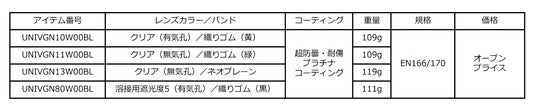 UNIVGN10W00BL(クリアレンズ/有気孔タイプ)※建設業・製造業などに