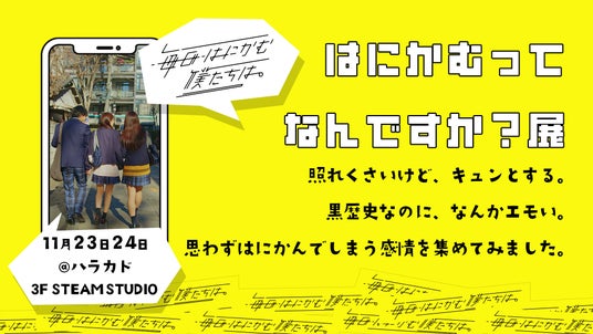 照れくさくてキュンとする、思わずはにかんでしまう”黒歴史”を集めた『はにかむってなんですか?展』11月23日(土)、24日(日)の2日間開催