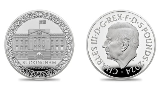 2023年に戴冠式を執り行った新イギリス国王、チャールズ3世のロンドン公邸であるバッキンガム宮殿を記念した5ポンドコインが、2024年アニュアルセットの一枚として採用されました。