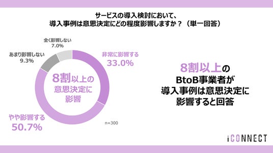 BtoB企業に向けて、ホワイトペーパーや導入事例制作の支援を行う株式会社アイコネクト(本社:東京都目黒区、代表取締役:広沢 祐介)は、マーケティング支援の一環として、BtoBサービスや製品の導入検討における「導入事例」の影響力について、調査をおこないました。