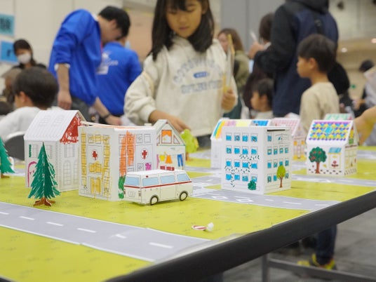 「みらいのたからばこ」は地域密着型こどものおしごと体験イベント・メディア・コミュニティを通じて、地域の繋がりを深め地域の人々の幸福度を高めるプロジェクトです。2023年は大阪のインテックス大阪で開催され、約1.7万人の来場者を記録しました。2025年の大阪・関西万博に向けて、さらに規模を拡大し、全国展開を目指しています。2030年までに、全国47都道府県での開催を目標としており、年間約70万人の来場者、累計で約300万人の参加を見込んでいます。この度公開する新マップでは、昨年開催時に300人以上の子供たちが作ったペーパーハウスで町並みを再現しました。