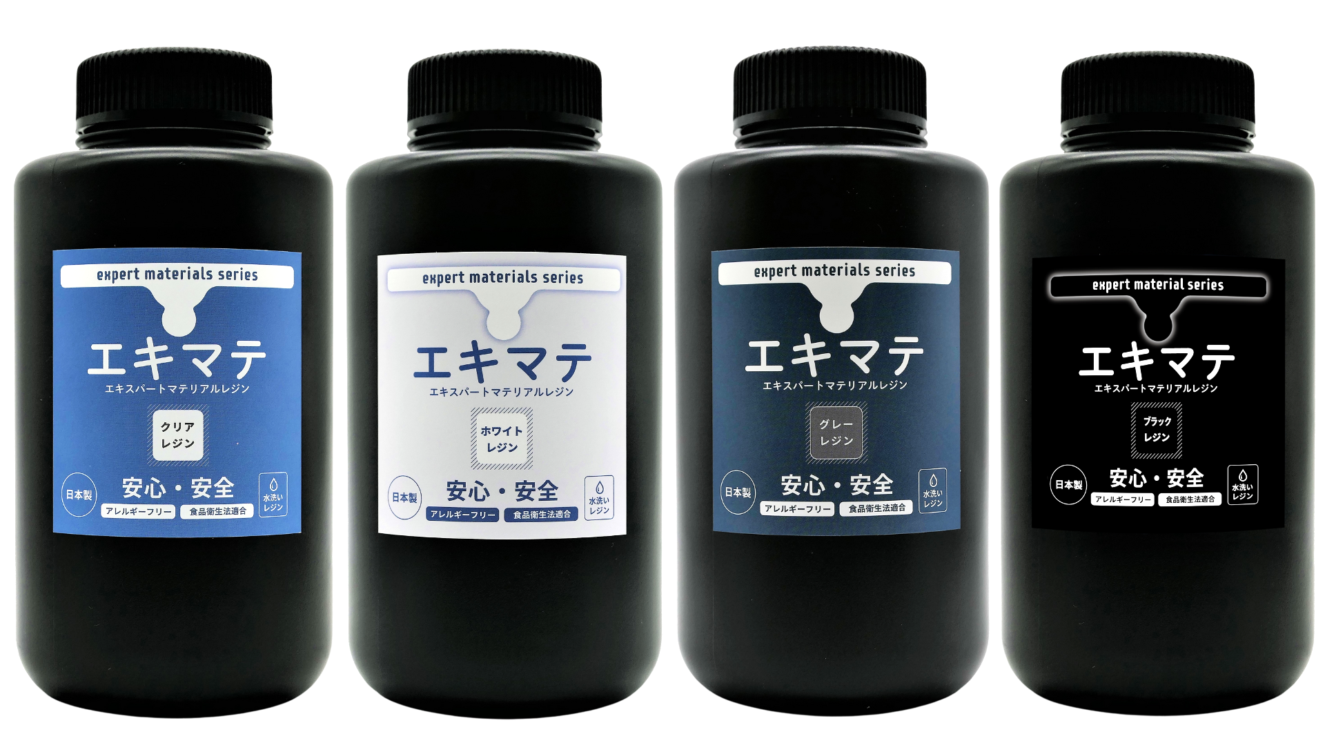 エキマテは、人と環境に配慮した設計が施された、水洗い対応・低臭気・アレルゲンフリー※1・発がん性物質不使用の水洗い可能な光造形3Dプリンタ用レジン材料です。