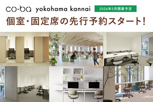 バ・アンド・コー株式会社(本社:東京都渋谷区、代表取締役会長:中村真広)は、JR関内駅前「BASEGATE横浜関内」タワー11階に2026年5月開業予定のシェアオフィス&コワーキングスペース「co-ba 横浜関内」について、本日2025年11月27日(木)より個室および固定席プランの先行予約受付を開始いたします。