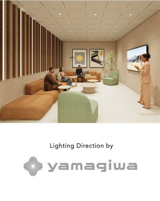 大小さまざまな用途に対応する会議室は、光を機能・意匠・環境の三位一体として捉えた照明デザインを行う「株式会社YAMAGIWA」がディレクション。会議やプレゼンテーションのシーンに応じて効果的なライティングを選択でき、快適で印象的な空間を演出します。例えば、リラックスした雰囲気の商談、議論が白熱する企画会議など、成果につながる環境を目指しています。なお、本施設全体の光環境も「株式会社YAMAGIWA」がデザインしています。