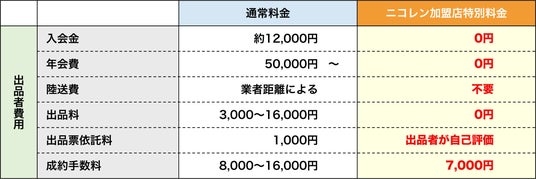 出品に必要な費用は、成約手数料7,000円(税別)だけで、陸送費もかかりません。