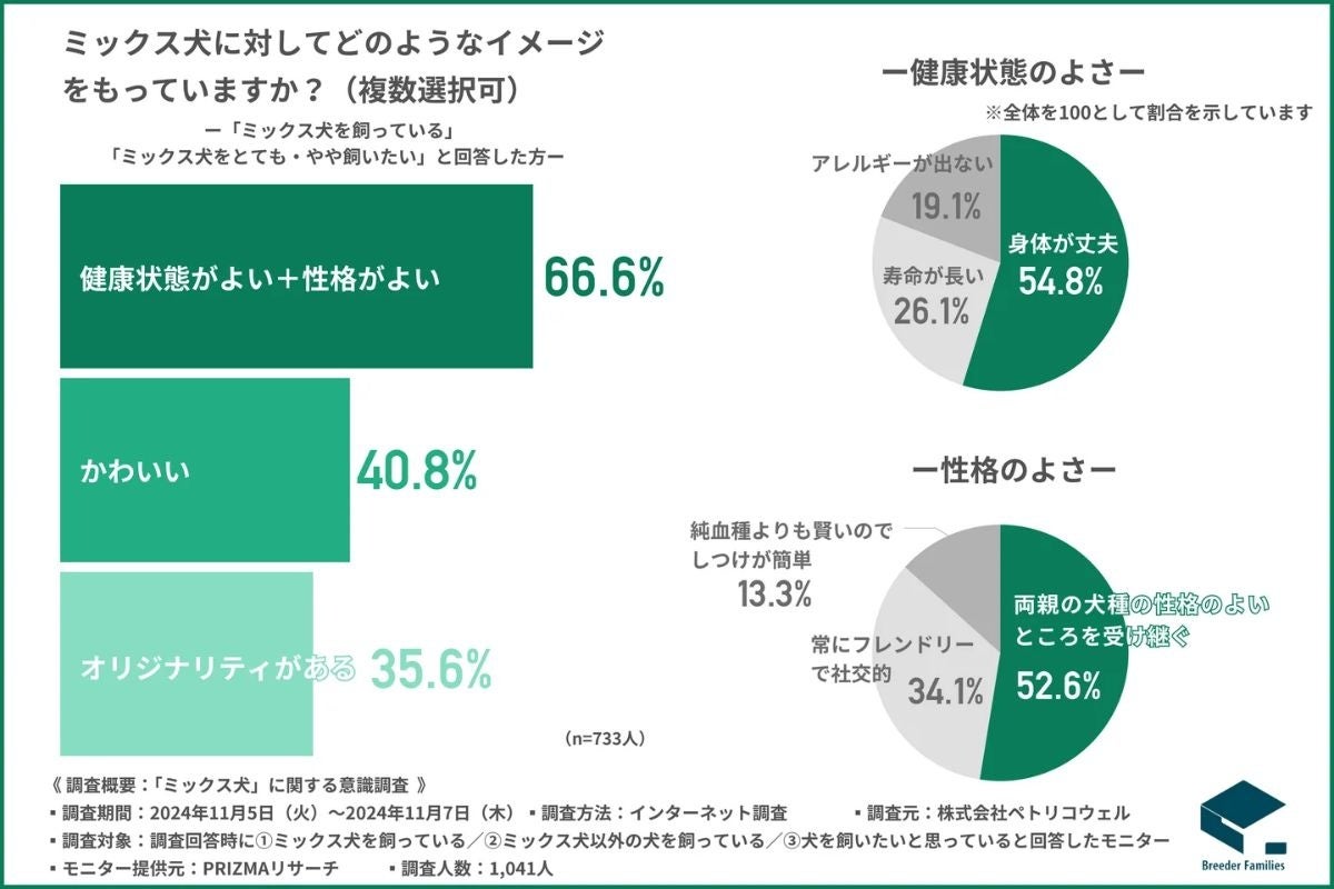 2024年11月にペトリコウェルが実施した飼い主向け調査では、66.6%の飼い主が「ミックス犬は健康で性格がよい」と回答し、人気の裏で誤った認識が広がっていることが分かりました。
