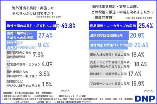 大日本印刷株式会社(DNP)が推進する「DNP出版IPビジネスプロジェクト」では、海外進出を試みたものの撤退・中断を経験した海外事業担当者を対象に、「海外進出における撤退・中断」の実態調査を実施しました。