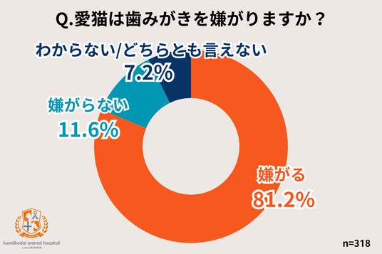スペシャリストホームドクター 上池台動物病院グループ(総院長:上野雅祐)は、猫の飼い主318名を対象に、愛猫の歯みがきに関するアンケート調査を実施しました。
