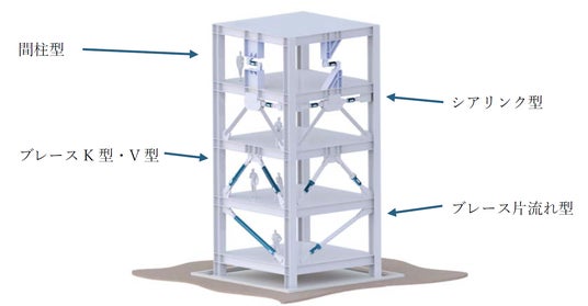 ブレース片流れ型、K型・V型以外にも、間柱型、シアリンク型など の設置が可能です。