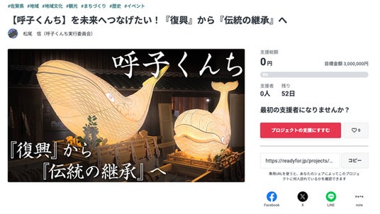クラウドファンディングサービス「READYFOR」にて、2022年に1300万円以上のご支援を集めて復活した祭り「呼子くんち」。呼子くんち実行委員会は、今回3回目の開催実現と、将来に向けた継承のためにクラウドファンディングプロジェクト「【呼子くんち】を未来へつなげたい!『復興』から『伝統の継承』へ」を公開しました。300万円を目標に、2024年9月30日(月)まで支援を募ります。