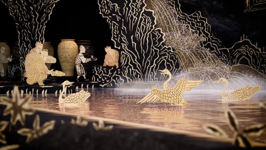 王羲之(おうぎし)と41人の名士による伝説の「曲水の宴」の様子をあらわした「蘭亭図巻(らんていずかん)(永楽本)」を3D映像で再現し、新たな鑑賞体験を提供