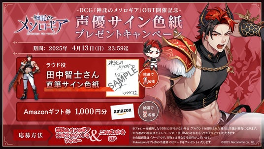 株式会社ネコノメ(本社:東京都中央区、代表取締役:工藤ショーン)は、現在オープンβテスト実施中のデジタルカードゲーム『神託のメソロギア』において、出演声優の直筆サイン色紙やAmazonギフト券が抽選で当たる5日間連続プレゼントキャンペーンの第3弾を開催したことをお知らせいたします。
