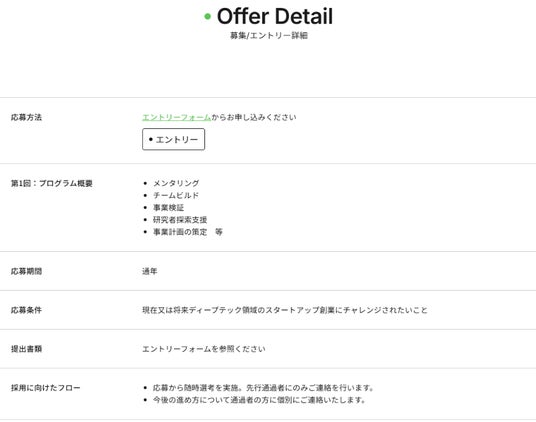 ディープテック領域で起業したい、あるいは既に事業アイデアをお持ちのビジネスパーソン・経営人材を対象にした、EIRプログラムです。