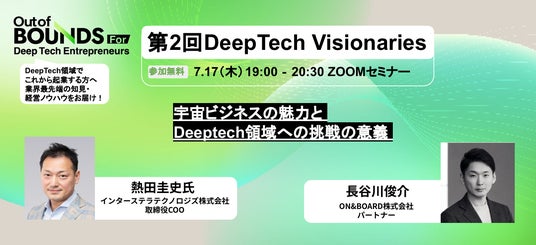 ON&BOARD株式会社(所在地:東京都港区虎ノ門、代表取締役:下平将人/中山航介、以下「当社」)は、常設の経営経験者・ビジネスマン向けディープテックプログラム