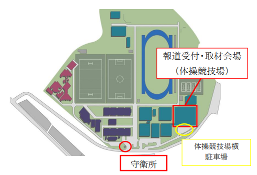 ※囲み取材は、体操競技場2階のミーテイングルームにて行います。