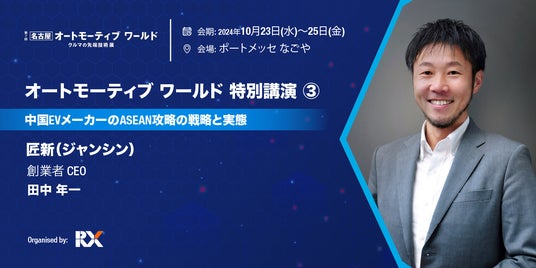 弊社CEO田中年一は<第7回 名古屋オートモーティブ ワールド> のカンファレンスに登壇し、中国EVメーカーによるASEAN市場への進出戦略について解説いたします