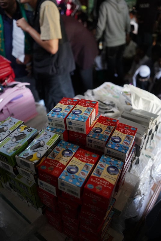 災害時に役に立つ防災毛布と、女性支援のための手回し式懐中電灯を持って行き、現地で寄付させて頂きました。
