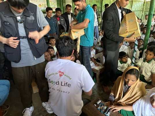 認定 NPO法人グッドライフ( 大阪府四条畷市 )は、バングラディシュのコックスバザール県にあるロヒンギャ難民たちのキャンプを訪れて、手回し式懐中電灯、防災毛布などの防災用品、ランドセル、文房具、サッカー用品などを寄付させて頂きました。