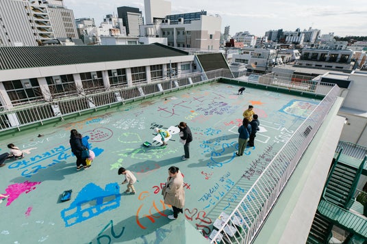 当日は、卒業生・在校生・保護者・地域住民を含む約600名が来場。創立以来約1万人の生徒の成長を見守ってきた西館の屋上や壁面に、参加者一人ひとりが「感謝」と「未来への想い」をペイントやペンで直接書き込み、世代を超えた共創の一日となりました。