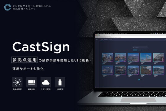 株式会社FRONTEO(東証グロース:2158)のグループ企業である株式会社アルネッツ(本社:神奈川県横浜市、代表取締役社長CEO 渡邉 輝明、以下「アルネッツ」)は、デジタルサイネージ配信システム「CastSign(キャストサイン)」のUIデザインを全面的にリニューアルし、あわせてヘルプサイトの提供を開始しました。