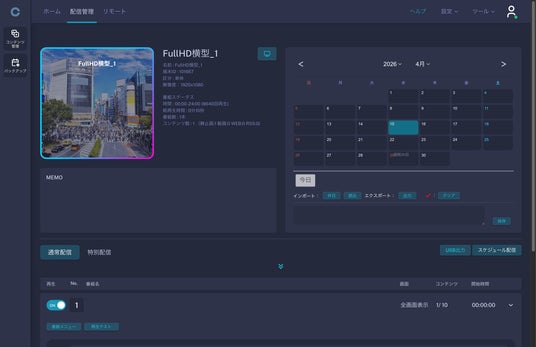 主な機能:コンテンツ配信(4K対応)、スケジュール管理、グループ一括配信、遠隔操作、死活監視 ほか