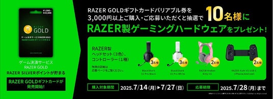 また発売を記念してセブン‐イレブンと共同で店頭キャンペーンを実施します。2025年7月14日(月)から7月27日(日)までの期間中、全国のセブン‐イレブン店舗にて1度の購入で3,000円以上購入されたお客様には、豪華Razer製品が当たる抽選キャンペーンにご応募いただけます。抽選で10名様に、以下の4種類のRazerハードウェアのいずれかをプレゼントいたします。