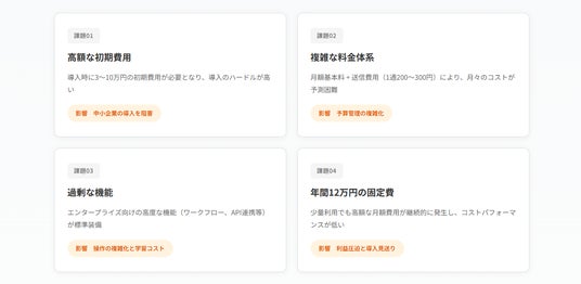 月5件程度の契約業務しか発生しない中小企業にとって、年間13万円を超えるコストは大きな負担となり、電子サインサービス導入の障壁となっていました。