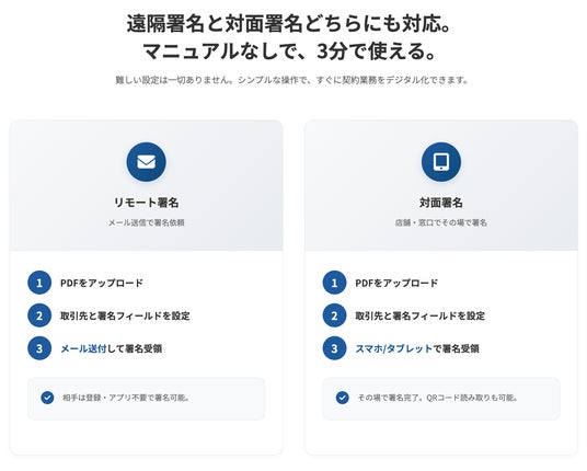 ・リモート署名: メール送信による署名依頼