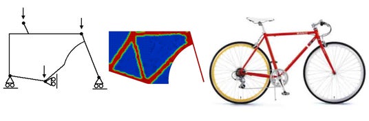 - 力法(ちからほう)による形状最適化複数の固有値、剛性、応力、体積などの要件を同時に考慮し、形状を自律的に成長・収縮させる独自アルゴリズム。