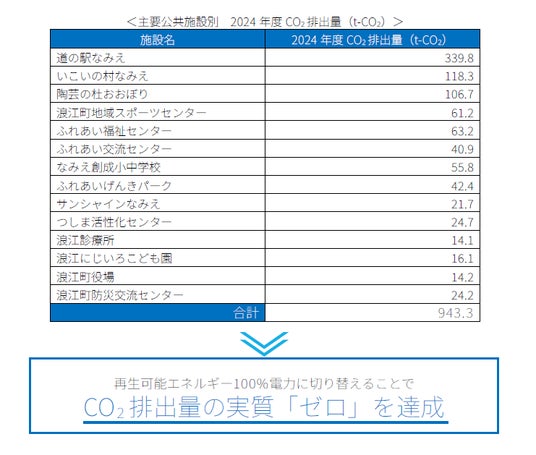 ・14施設の電力で策定した公共部門におけるCO2排出量について、2024年度実績で約943 t-CO2であった同施設の二酸化炭素排出量を実質「ゼロ」に削減できる見込みです。