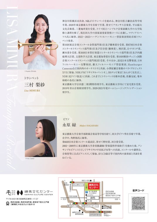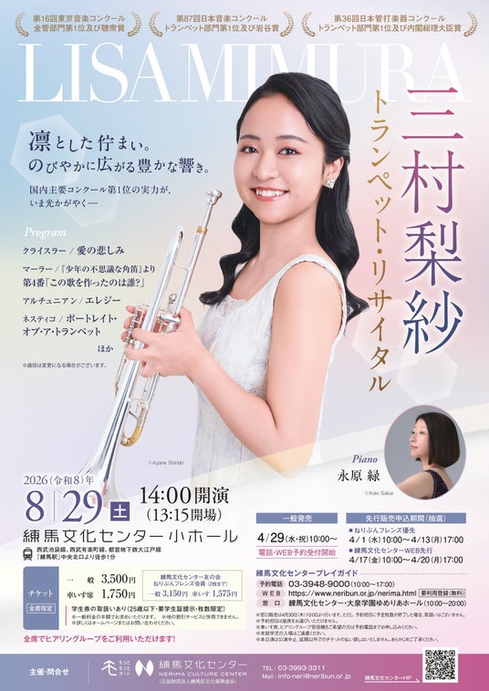 2026年8月29日(土)に練馬文化センター・小ホールにて、「三村梨紗 トランペット・リサイタル」を開催いたします。