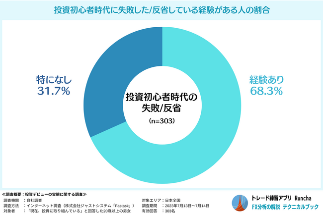 1.投資デビュー時に何らかの失敗を経験した人は68.3%、失敗を経験していない人は31.7%にとどまる