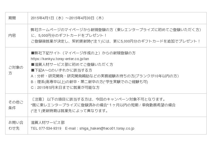 <新規登録キャンペーン!>マイページ作成でギフトカードプレゼント!分析・研究開発職お友達紹介キャンペーン