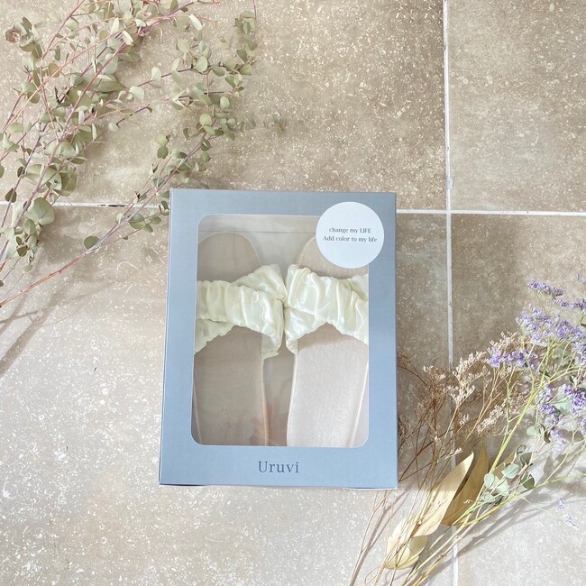 プロジェクトリーダーである商学部・飴野ゼミ4年次生の松田さんは、「市場・流通調査を踏まえて企画考案し、スリッパの機能とデザインを両立させるため、素材選びやパッケージなどにもこだわり、美容×映えを追求したところがポイントです。スリッパを『履物』ではなく、『美容グッズ』として認識してもらえるよう、工夫を重ねて仕上げた宣材写真にも注目してください」と語っています。■ 商品概要 <商品名:足裏ケア Uruvi (ウルヴィ)>【 ね ら い 】若年層のスリッパ離れに歯止めをかける!生活用品から「美容グッズ」に認識を変化させる!【コンセプト】忙しい日々の「ながら」足裏ケアスリッパ。髪を乾かしながら、SNSを見ながら、足裏ケアを。【販売開始日】2023年4月12日(水)