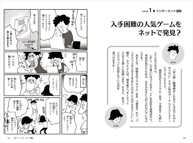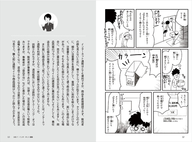 本書では、インターネット通販、ガチャ課金、架空請求、投資詐欺、高収入バイトなど、身近に潜む40の被害例をマンガで紹介し、弁護士による解説を付けました。