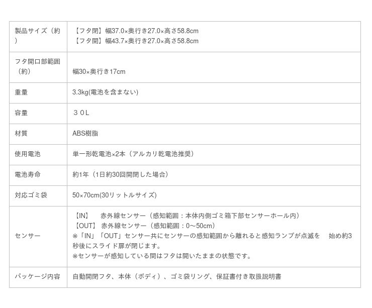 現在、他にもフタが横スライドするセンサー式ゴミ箱も販売はされています。しかし、そのほとんどはセンサーに手かざしてフタを開閉するタイプで、フタにセンサーが付いているためテーブル下で使用できますがゴミ箱とテーブルの天板の間に一定の距離がないと、 センサーが反応してフタが開くという問題がありました。