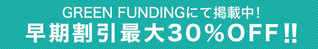 GREEN FUNDINGにて掲載中です。早期割引最大30%OFF。一般販売は2022年12月販売開始予定。