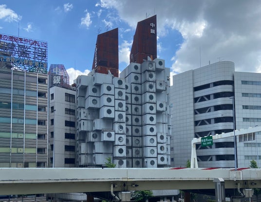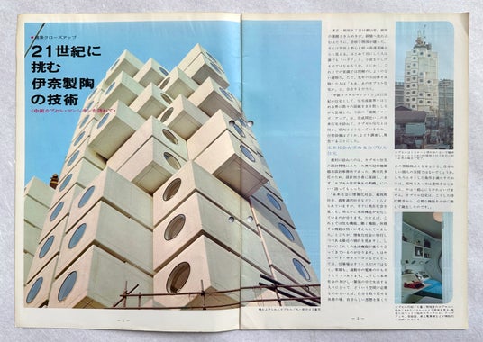 建築家黒川紀章の代表作「中銀カプセルタワービル」(1972年-2022年)。メタボリズム(新陳代謝)思想の建築として、世界中の多くの方から愛されてきました。本来は古くなったカプセル(部屋)を交換することで、半永久的に使用できる建物として注目されましたが、一度も交換されることはなく、2022年に解体されました。