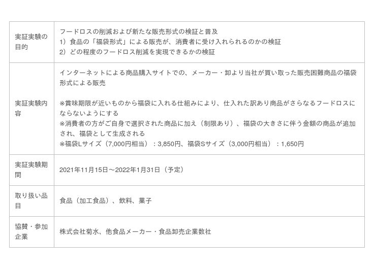 株式会社ウィナス(本社:東京都豊島区、代表取締役社長:浜辺 拓 以下 当社)は、「フードロスの削減および新たな販売形式を検証する実証実験を本格始動いたします。