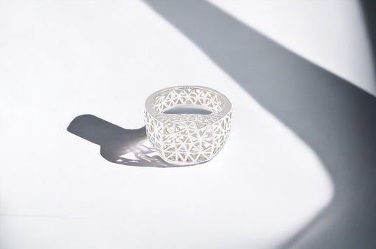 高精度の3Dプリンターで精密なデザインも再現。写真はオールメッシュ構造のリング。