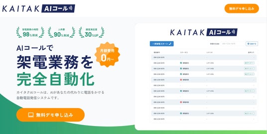 カイタク株式会社(代表取締役CEO:松木 友範、以下「当社」)は、AIが自然な音声で電話をかけ、応対内容を自動で調整・記録する自動電話発信システム「カイタクAIコール」の先行リリースを開始しました。