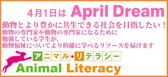 当法人は、4月1 日を夢を発信する日にしようとする April Dream に賛同しています。このプレスリリースは 「一般社団法人アニマル・リテラシー総研」の夢です。