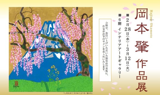 岡本肇先生渾身の描き下ろし、満開の桜と富士の美しい作品が、岡山高島屋にて初登場致します!タイトルが俳句になった粋な桜作品5点は必見です