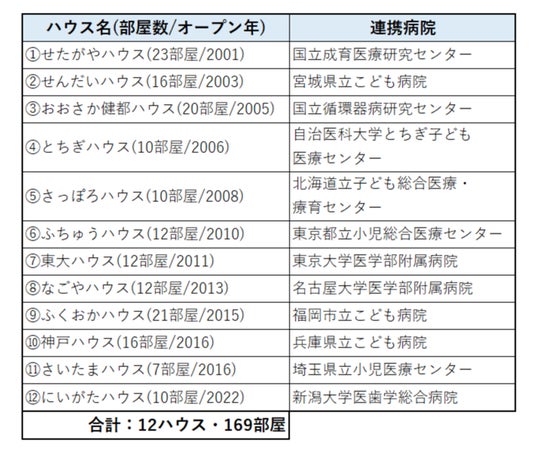 ハウスは、自宅から遠く離れた医療機関で治療を受ける小児患者家族の精神的・肉体的・経済的負担をサポートすることを目的に、高度な小児医療を提供する病院に隣接して設置されている滞在施設です。"Keeping Families Close"、どんな時でも家族が一緒にいられるように、という想いのもと、現在日本国内には12カ所・全世界には約390カ所設置されています。1人1日1,000円で滞在することができ、プライバシーが確保された個室のベッドルームで心身を休められるほか、共用のキッチン・ダイニングでは自炊が可能で、同じ立場のご家族同士で交流をすることも可能です。
