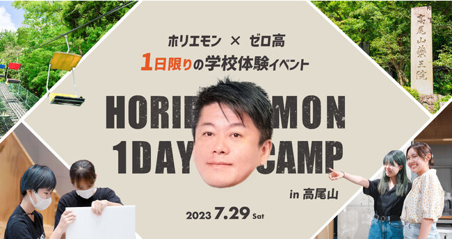 ゼロ高等学院(株式会社ZERO EDUCATION&ARTS)は、2023年7月29日(土)に東京八王子・高尾山にて、中学3年生を対象としたゼロ高体験イベント「HORIEMON 1DAY CAMP」を開催します。本イベントでは、主宰である実業家の堀江貴文をはじめ、現役ゼロ高生らも参加し、参加型によるビジネスアイデア創出ワークショップ、屋外体験アクティビティ、パネルディスカッションなどを行います。